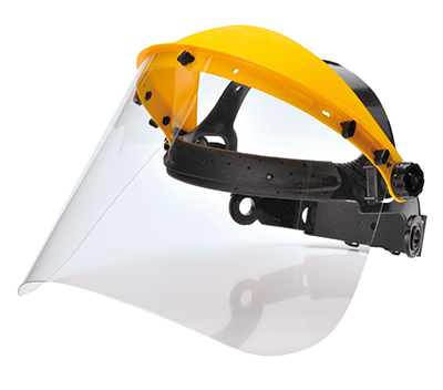 PC visor with PP browguard manufactured from impact resistant polypropylene. The wheel ratchet adjustment system is designed for easy use. Replacement visor available (PW92).